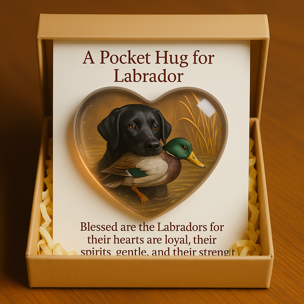 🐶Encased in a heart of light, featuring the beloved Labrador and mallard, this pocket hug honors the loyalty, courage, and calm devotion that define this noble breed.